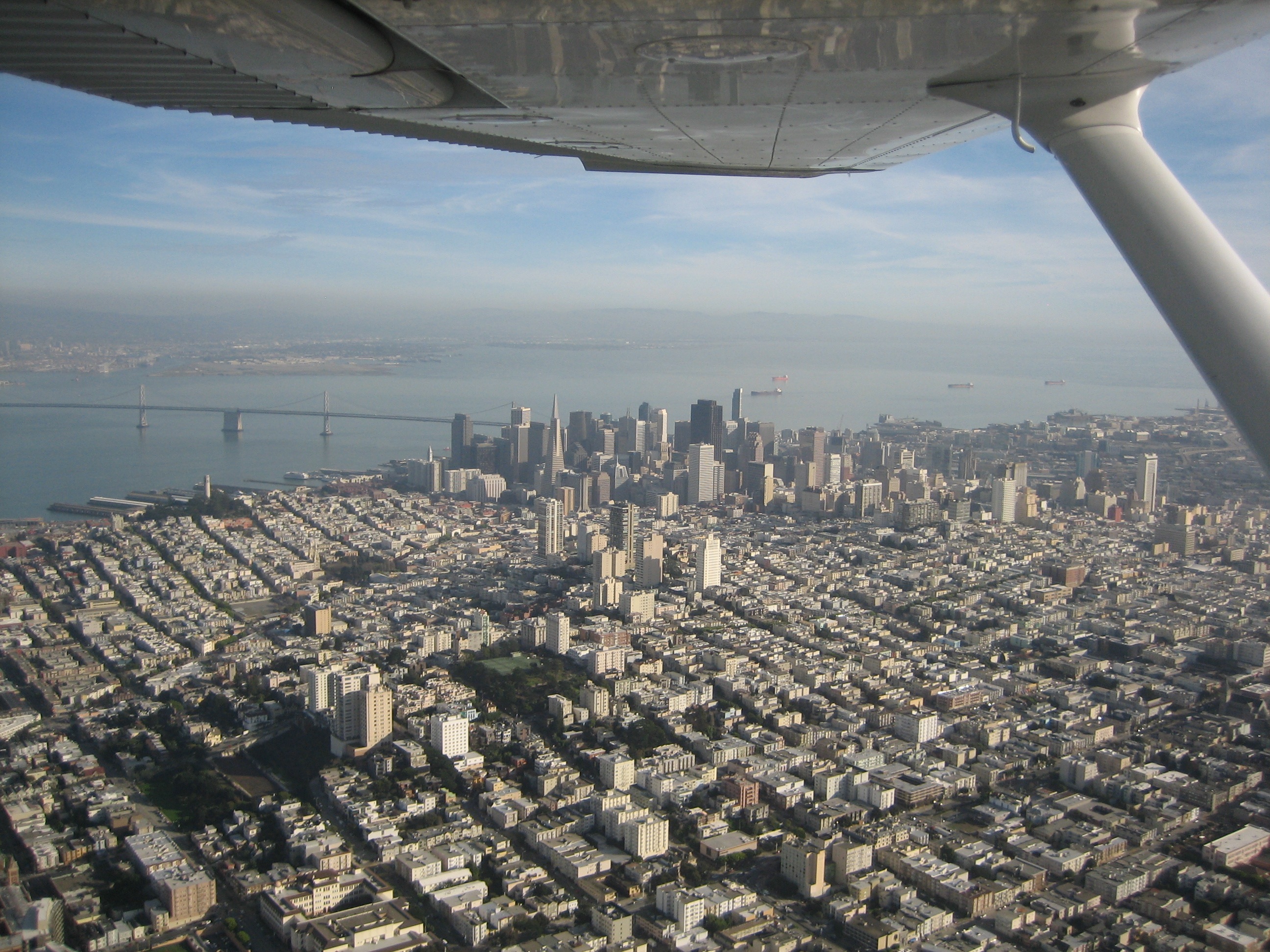 After a quick stop at San Carlos (KSQL), we flew across the bay, overflying Oakland International (KOAK)