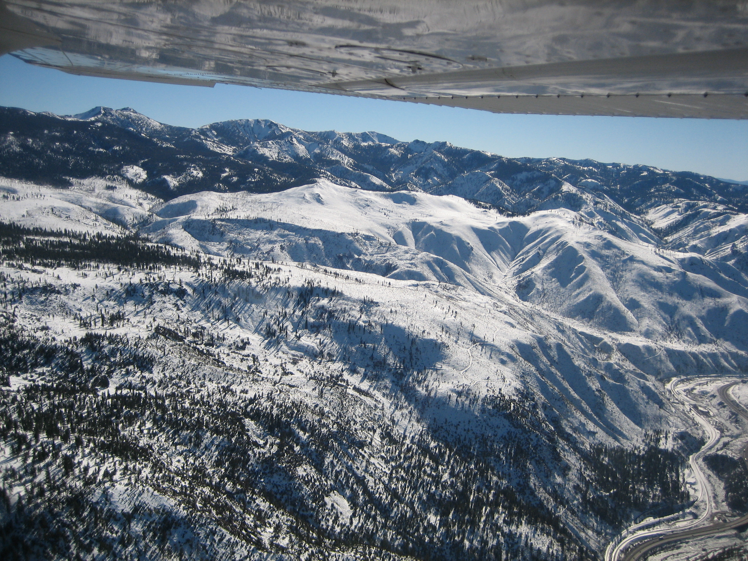 We departed Placerville on a gorgeous, bluebird January Monday. We flew north to the Blue Canyon Nyack airport, and then flew along I-80 up to Truckee.