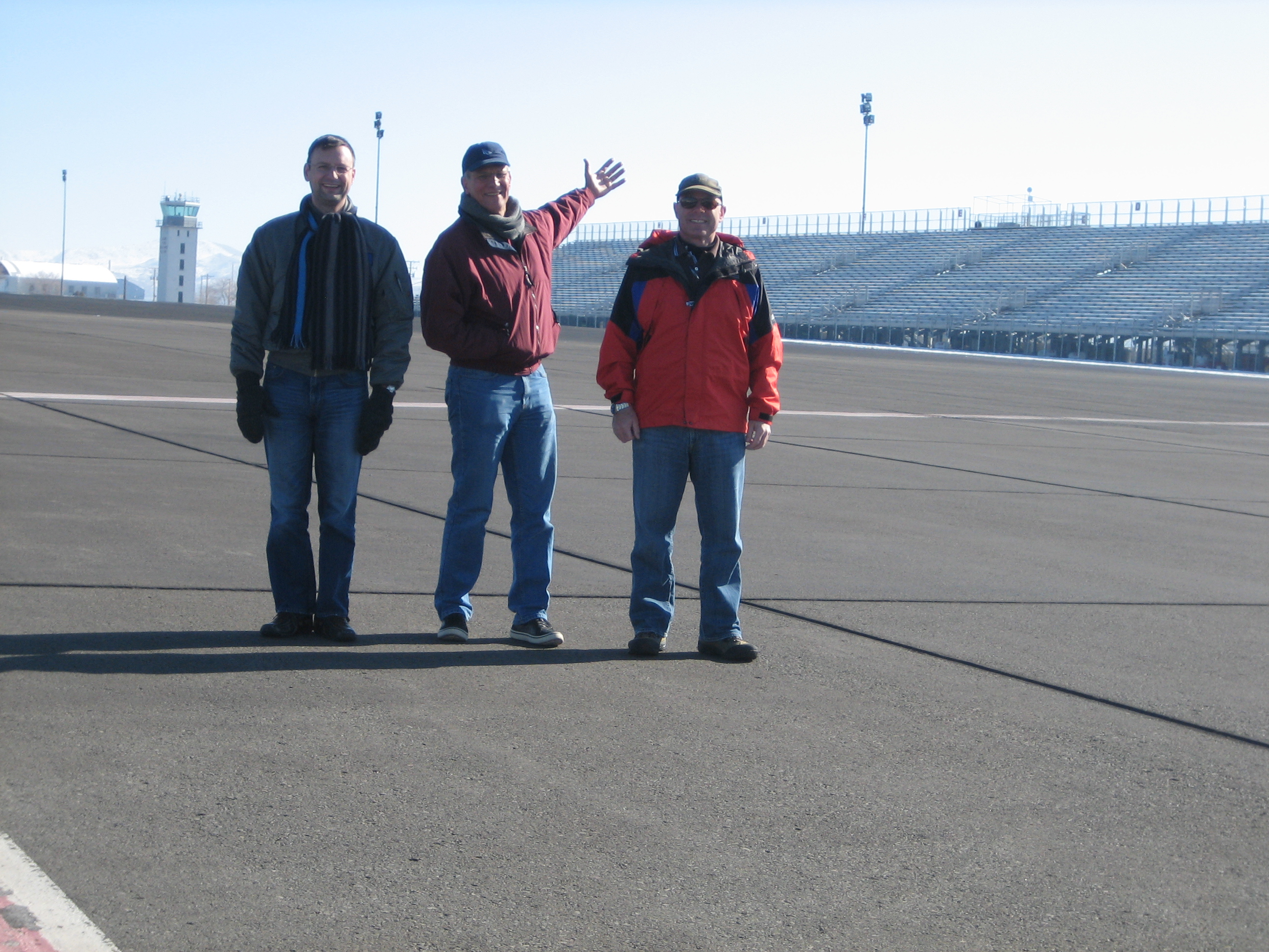 Next, was a quick 25 NM hop over to Reno-Stead airport, home of the Reno Air Races. John R. is pointing towards the spectators’ stands, and the old control tower from Stead’s former days as an Air Force base, is just behind my right shoulder.